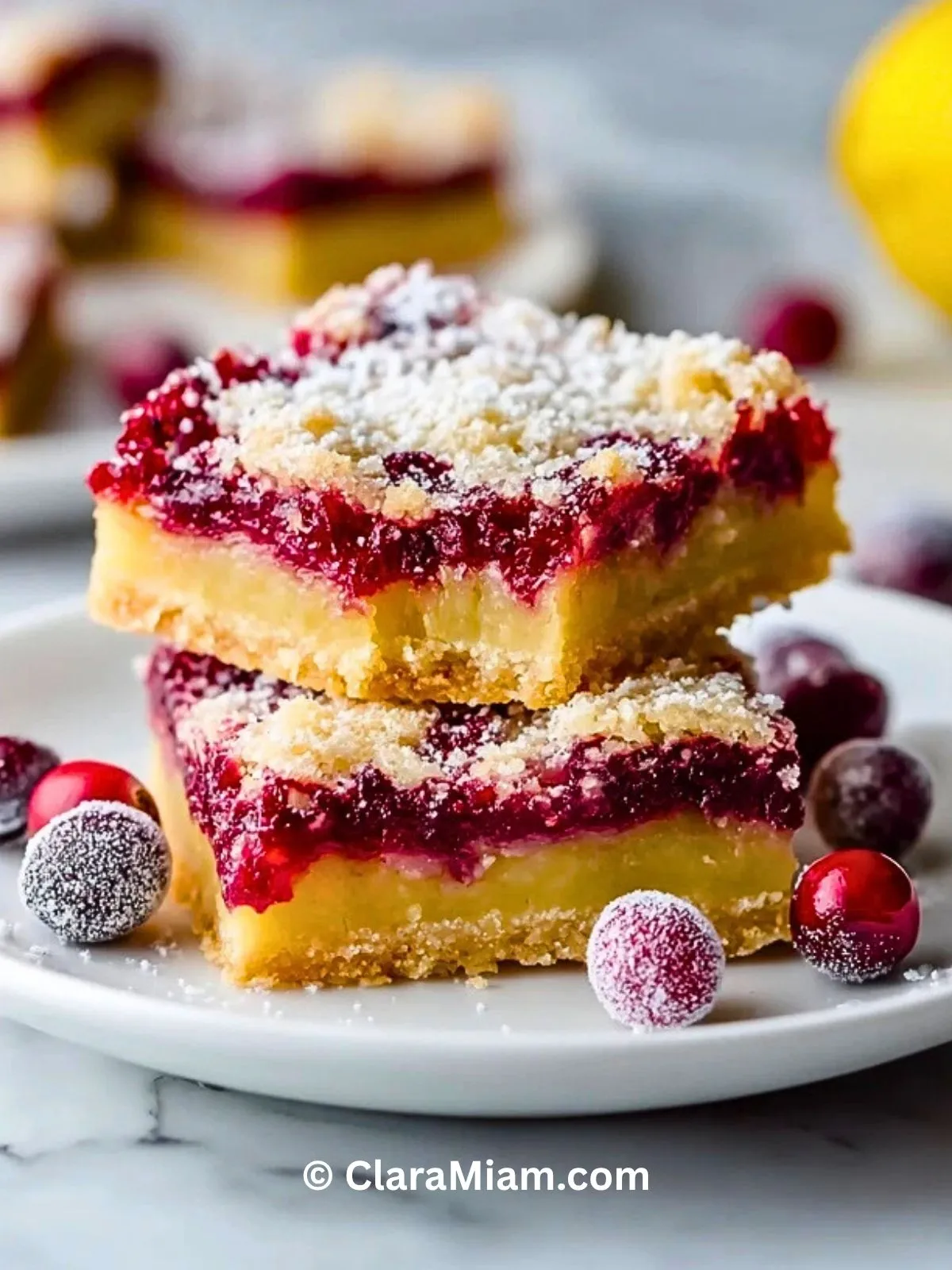 Ces Barres Au Citron Et Aux Canneberges sont un dessert fruité, fondant et acidulé, parfait pour les fêtes, le goûter ou un brunch maison. Cette recette facile associe une base sablée au beurre, une crème au citron fraîche et des canneberges acidulées pour un résultat gourmand, élégant et plein de saveur. Idéal à préparer à l’avance et à partager.