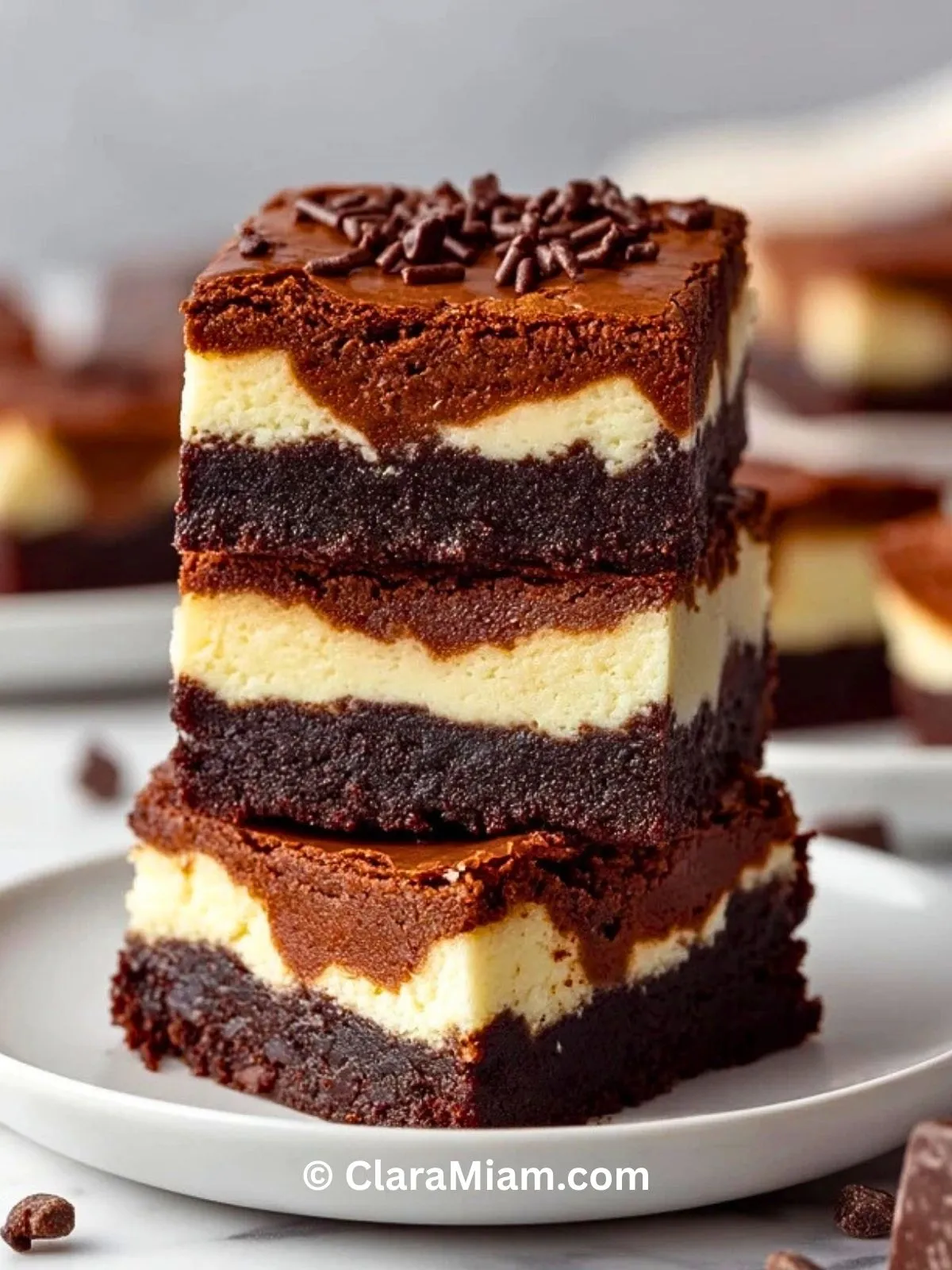 Ces Barres Cheesecake Au Chocolat Fudgy réunissent le meilleur du brownie fondant et du cheesecake crémeux dans un dessert ultra gourmand. Avec leur base au chocolat intense, leur couche vanillée onctueuse et leur dessus moelleux, elles sont parfaites pour un goûter, un dessert de fête ou une pause sucrée maison. Une recette facile, riche en saveur, idéale pour les amoureux de chocolat.