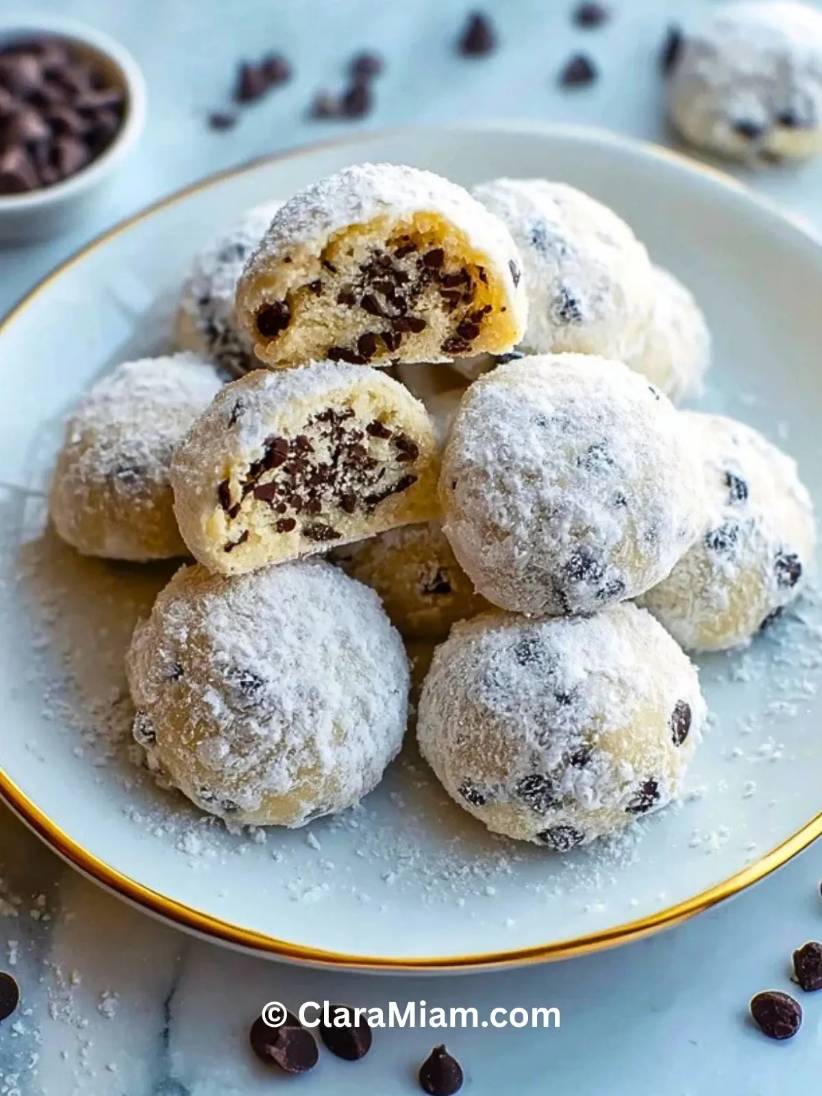 Keywords: biscuits neige, biscuits aux pépites de chocolat, biscuits de Noël, snowball cookies