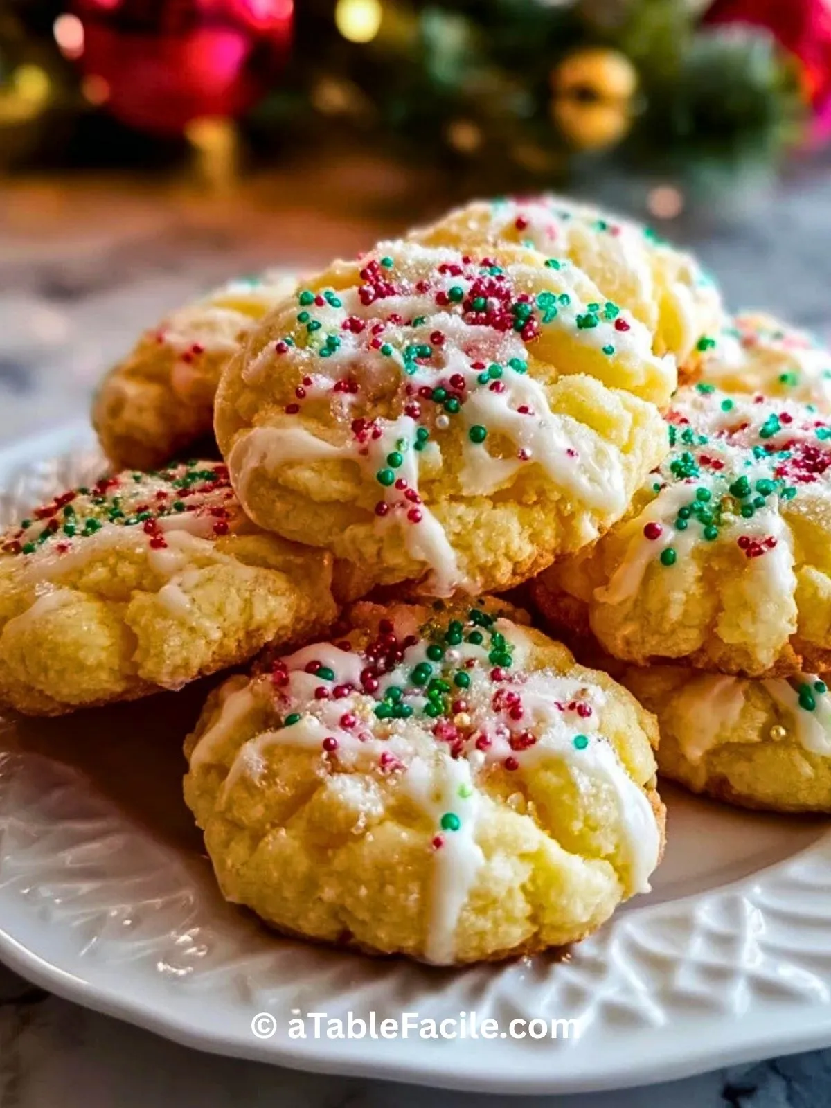 Biscuits moelleux et festifs pour Noël, parfumés à la vanille et décorés de perles colorées. Texture ultra fondante, recette facile à réaliser en famille, idéale pour un goûter ou à offrir pendant les fêtes.