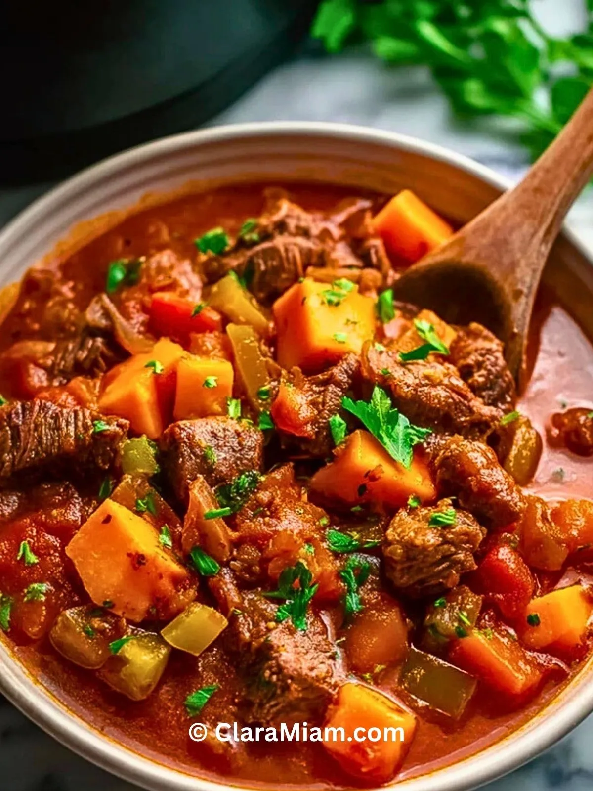 Boeuf Aux Patates Douces À La Mijoteuse est un plat mijoté facile, réconfortant et savoureux, parfait pour un repas familial. Le bœuf devient tendre après une cuisson lente, tandis que les patates douces apportent une note douce et fondante. Cette recette à la mijoteuse est idéale pour préparer un dîner complet avec peu d’effort.