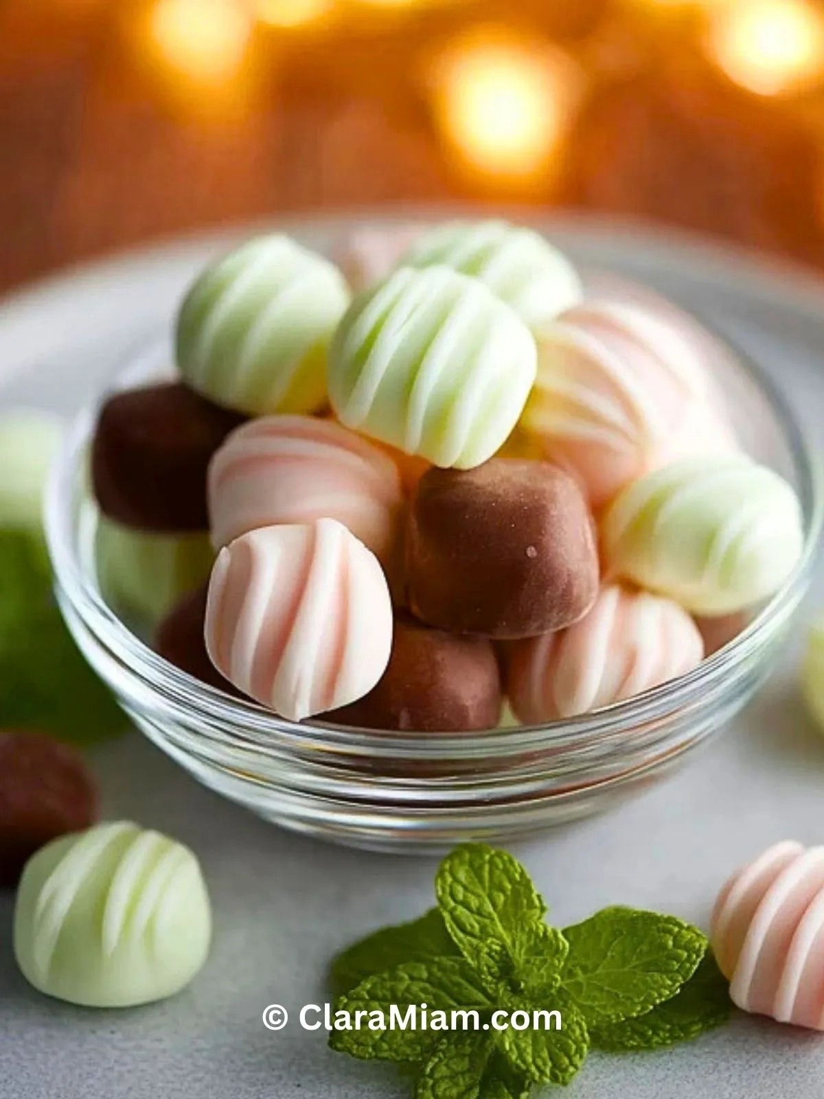 Ce qui me plaît le plus avec ces bonbons, c’est leur simplicité : peu d’ingrédients, une préparation sans cuisson, et la possibilité de varier les couleurs ou les finitions selon l’occasion. Ils séduisent toujours les gourmands, petits et grands, et apportent une touche élégante à un plateau de mignardises.