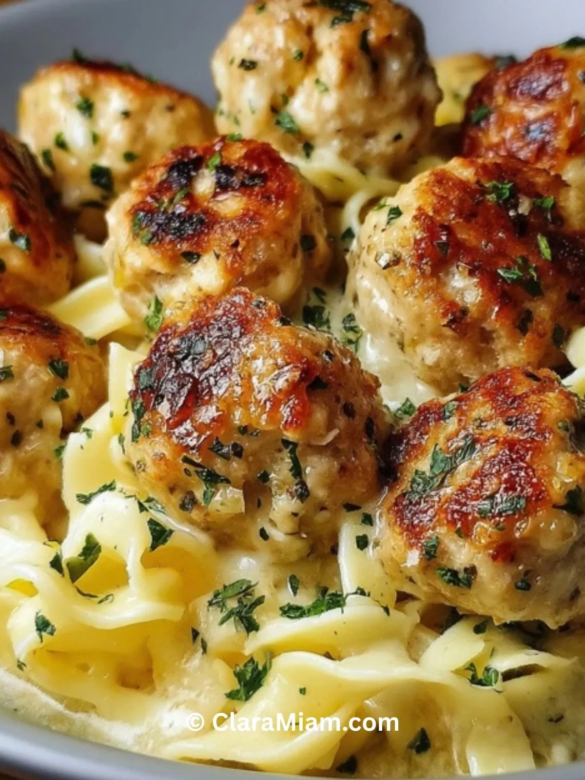 Boulettes de poulet à l’ail et au beurre, moelleuses et parfumées, servies avec des pâtes crémeuses au parmesan. Une recette facile et rapide, idéale pour un repas familial réconfortant et plein de saveurs, parfaite pour les amateurs de cuisine italienne maison.