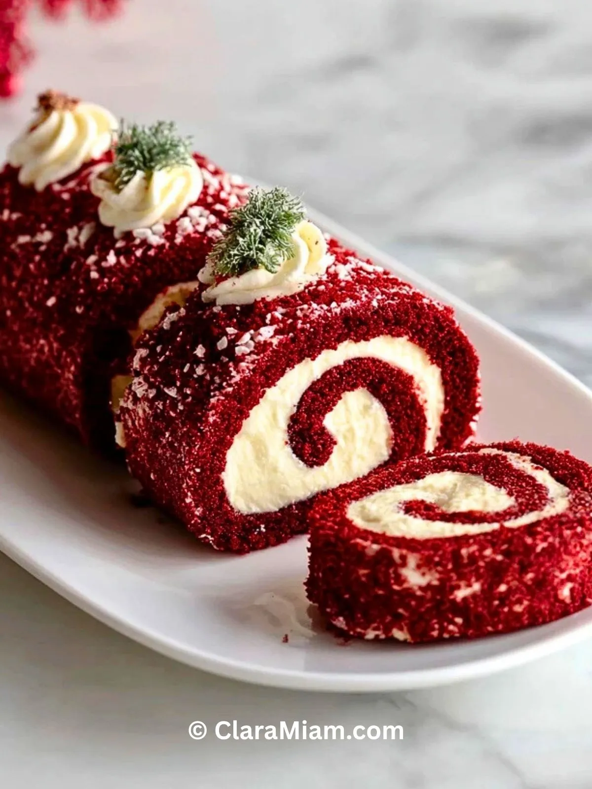 Keywords: bûche de Noël, velours rouge, dessert de fête