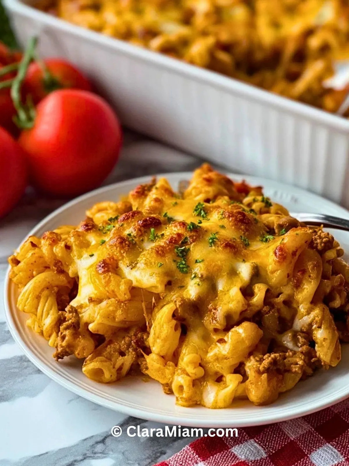 J’aime particulièrement cette recette parce qu’elle réunit tout ce qui fait plaisir dans une seule préparation: des pâtes tendres, du bœuf bien assaisonné, une sauce crémeuse à la tomate et une belle couche de fromage gratiné. À chaque fois, je sais que le plat disparaît vite à table, même auprès des plus difficiles.