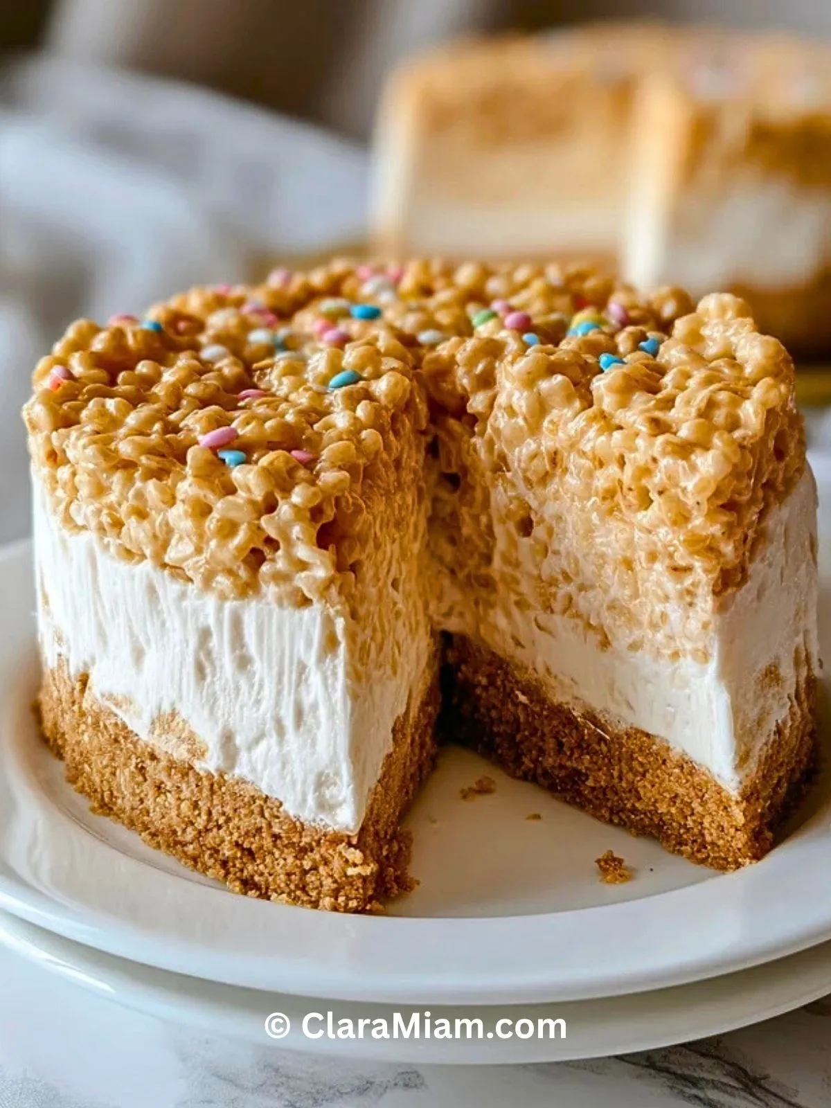 Keywords: cheesecake aux Rice Krispies, cheesecake sans cuisson, dessert croustillant, dessert facile, cheesecake gourmand