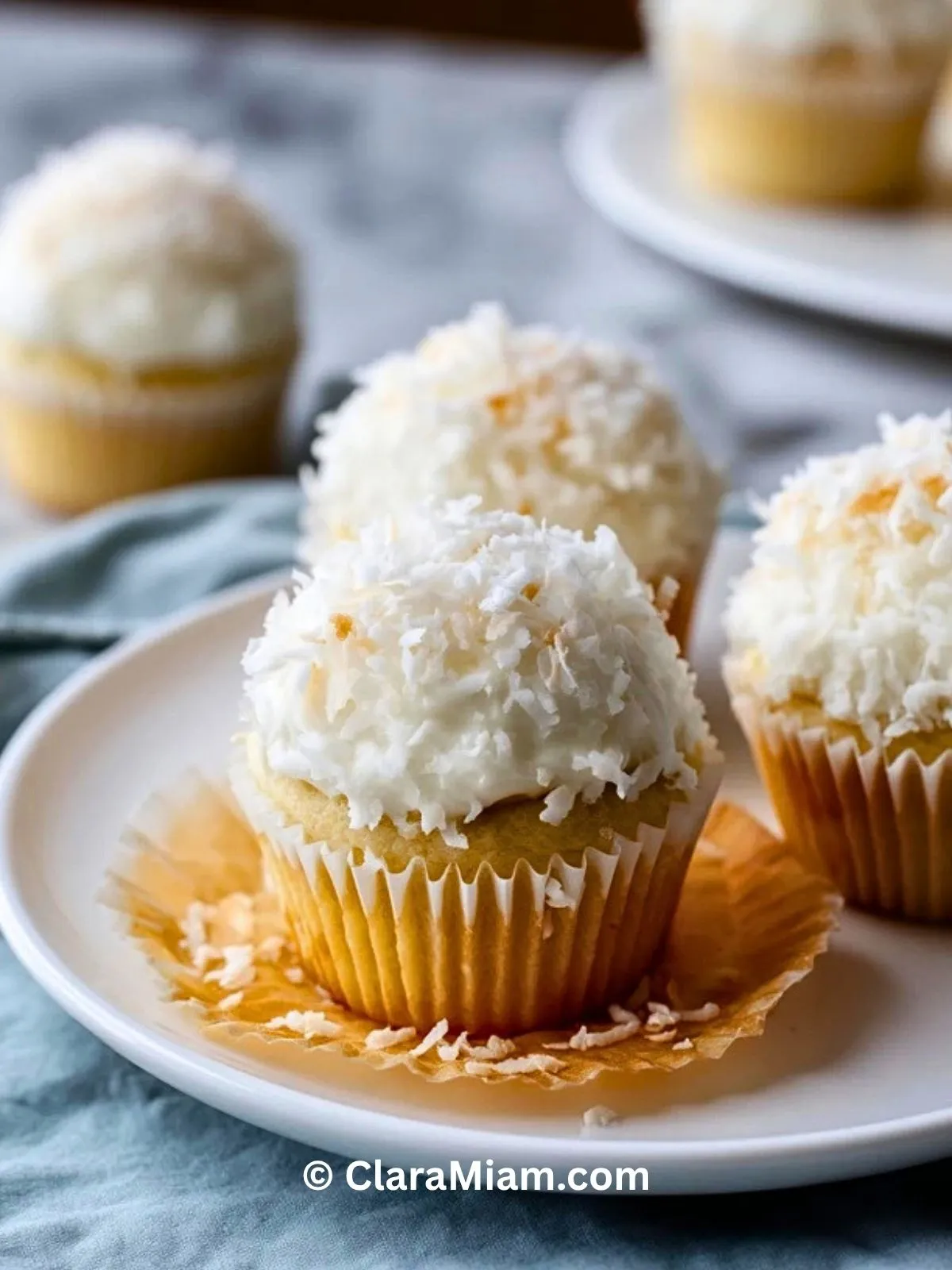 Keywords: cupcakes à la noix de coco, cupcakes coco, dessert coco, recette cupcakes moelleux, glaçage coco