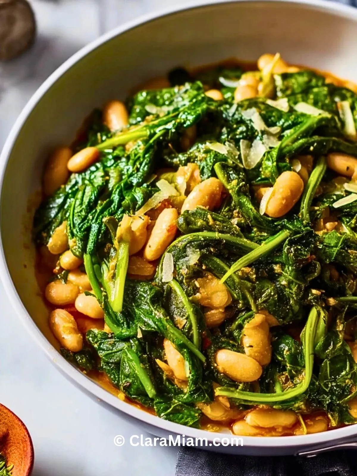 Haricots Blancs Méditerranéens aux Légumes Verts est une recette saine, facile et savoureuse, parfaite pour un dîner végétarien rapide. Préparé avec des haricots blancs fondants, des épinards, une sauce tomate parfumée et des herbes méditerranéennes, ce plat complet est riche en fibres, en protéines végétales et idéal pour les repas du quotidien.