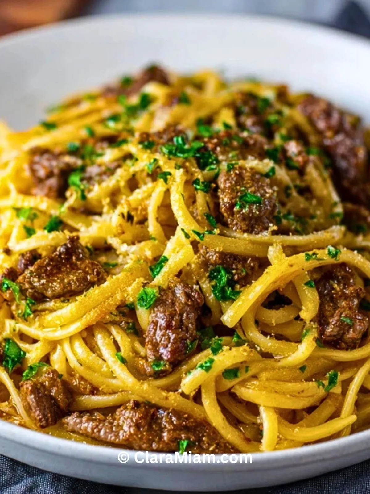 Pâtes Au Bœuf À LAil Et Au Beurre