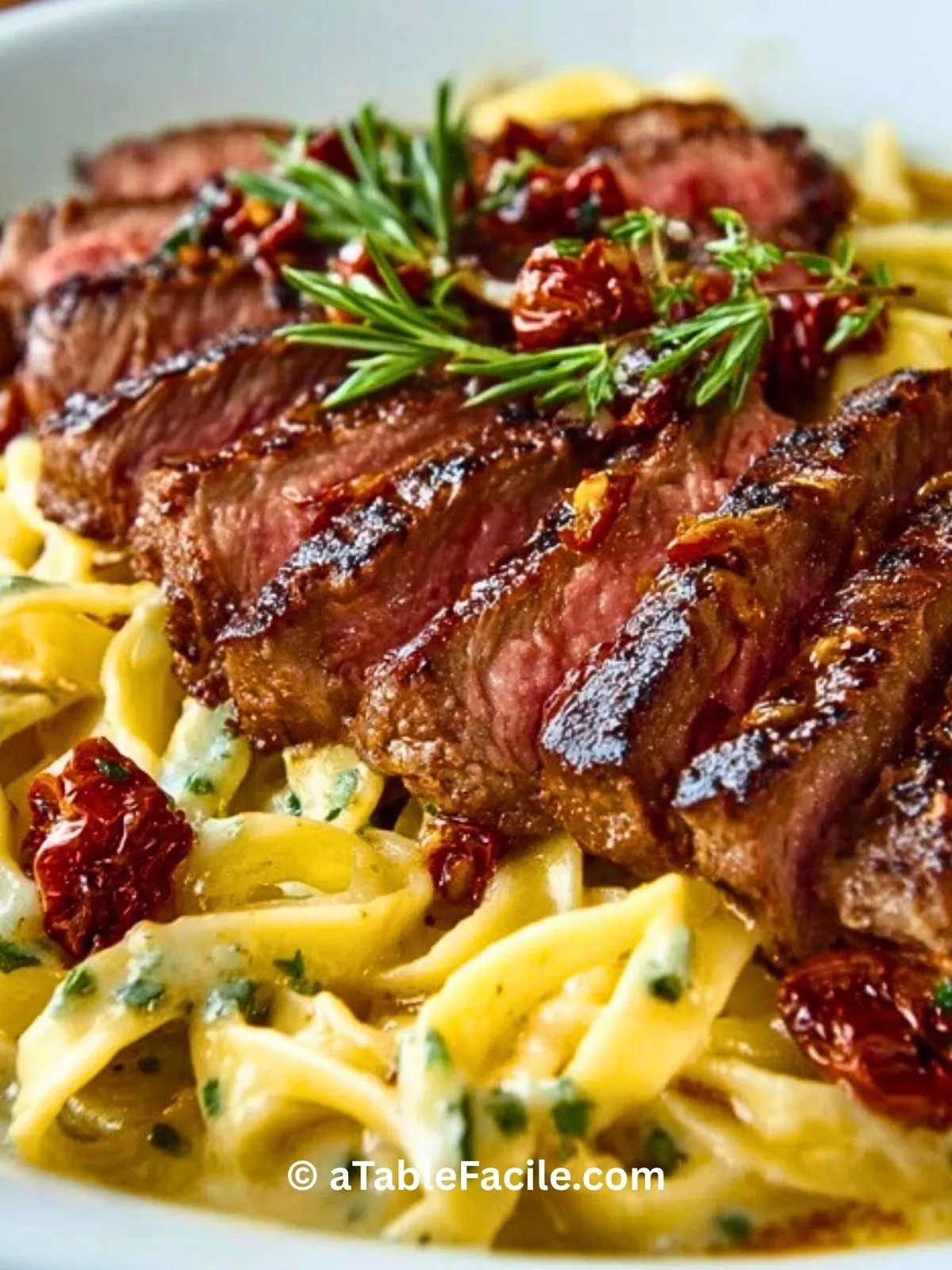 Quand je prépare ce plat, je sais que je vais faire plaisir : les pâtes s’imprègnent de la sauce onctueuse, le steak est juste saisi et chaque bouchée est un vrai feu d’artifice de saveurs. Et puis, la vaisselle minimale, c’est la cerise sur le gâteau…