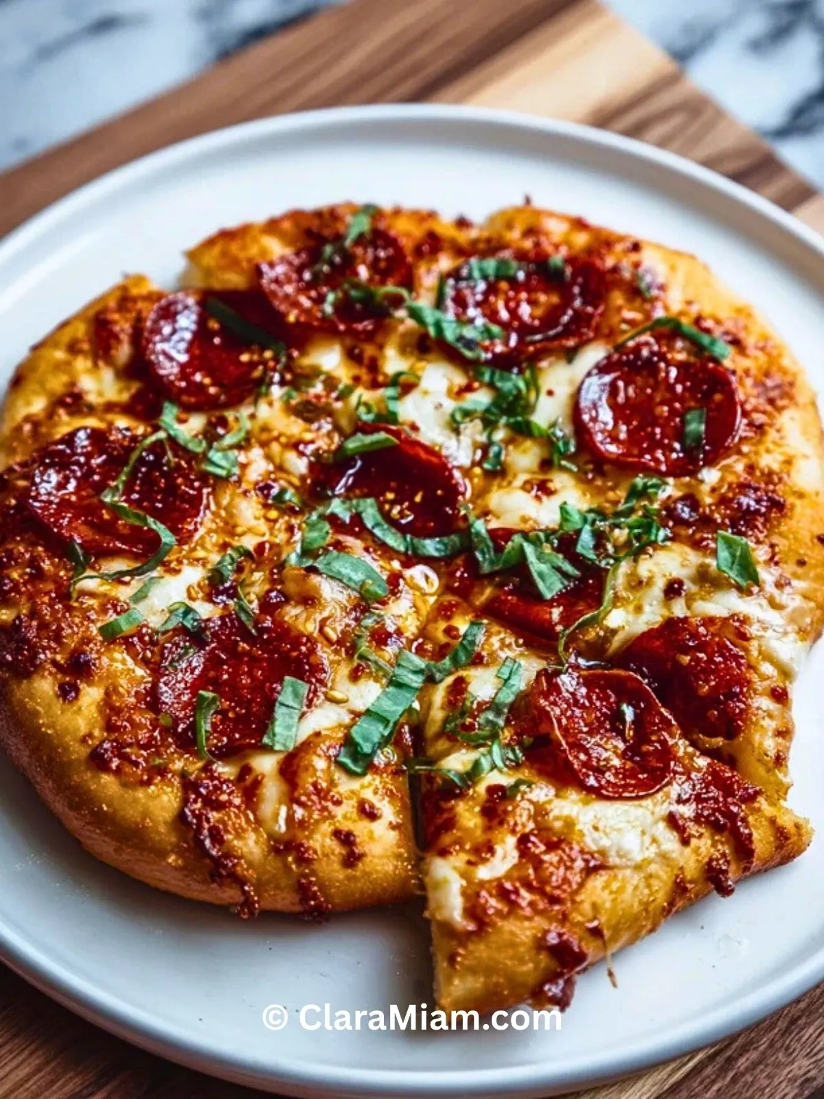 Pizza maison gourmande avec miel épicé, fromages fondants et pepperoni. Un mélange sucré-salé irrésistible qui surprend et régale à chaque bouchée.