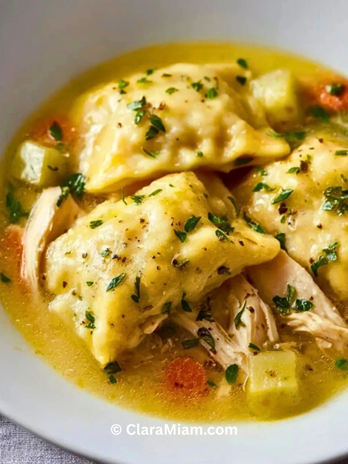 Cette recette, c’est vraiment la promesse d’un bouillon savoureux, d’un poulet fondant et de dumplings moelleux. Elle réchauffe les cœurs et réconcilie tout le monde autour de la table. Simple à préparer, elle a tout pour devenir un classique chez vous aussi !