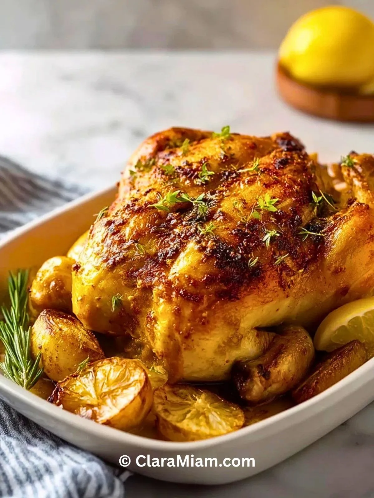 Ce que j’aime dans ce Poulet Rôti Classique, c’est son équilibre parfait entre une peau bien dorée, une chair moelleuse et des parfums discrets d’ail, de citron et d’herbes. Avec quelques pommes de terre autour, on obtient un repas complet, élégant sans être compliqué, que je prépare aussi bien pour un déjeuner familial que pour un dîner du dimanche.