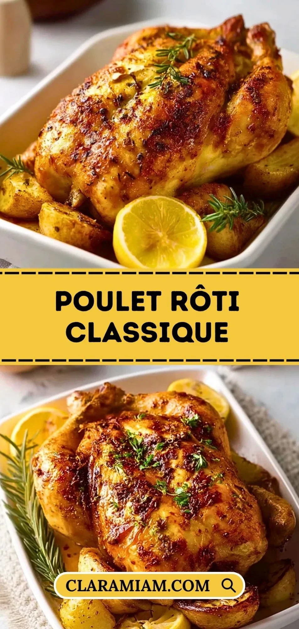 Keywords: poulet rôti classique, poulet au four, plat familial, pommes de terre rôties, recette facile