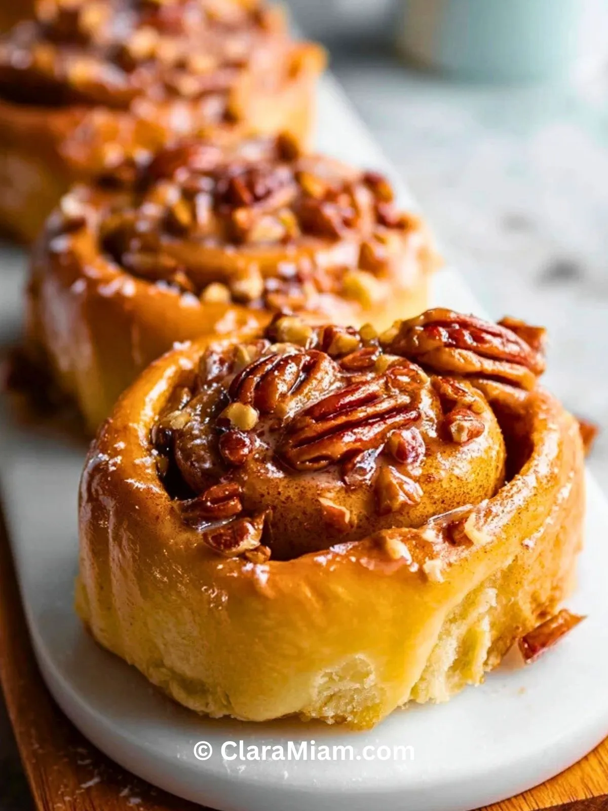 Ces roulés aux pacanes sont de petites brioches moelleuses garnies de cassonade et de cannelle, cuites sur un lit de caramel au beurre et de noix de pacane. Une fois retournés, ils dévoilent un dessus brillant, collant et ultra gourmand, parfait pour un brunch de fête, un petit-déjeuner du week-end ou un dessert réconfortant à partager.