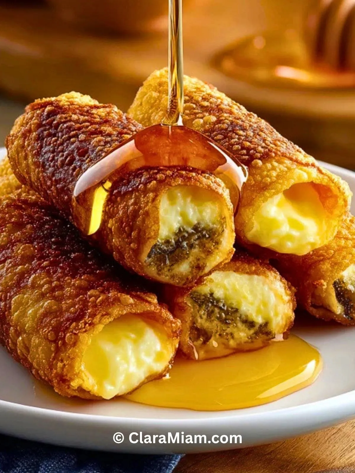 Ces roulés texan aux oeufs avec miel sont croustillants à l’extérieur, fondants au centre et ultra gourmands. Garnis d’une crème douce au fromage frais, aux oeufs, à la vanille et aux raisins secs, puis dorés à la perfection et nappés de miel, ils sont parfaits pour un brunch sucré, un dessert rapide ou une idée originale à partager.