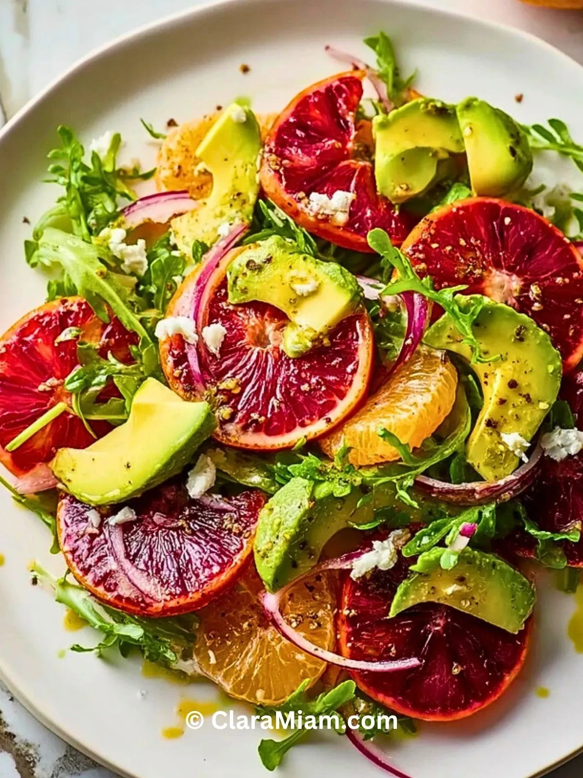 Cette salade d’orange sanguine et d’avocat est une entrée fraîche, légère et colorée, parfaite pour un repas sain et rapide. Avec ses agrumes juteux, son avocat fondant, ses jeunes pousses croquantes et sa vinaigrette citronnée, elle offre une recette facile, élégante et pleine de saveurs, idéale pour un brunch, une entrée chic ou un déjeuner équilibré.