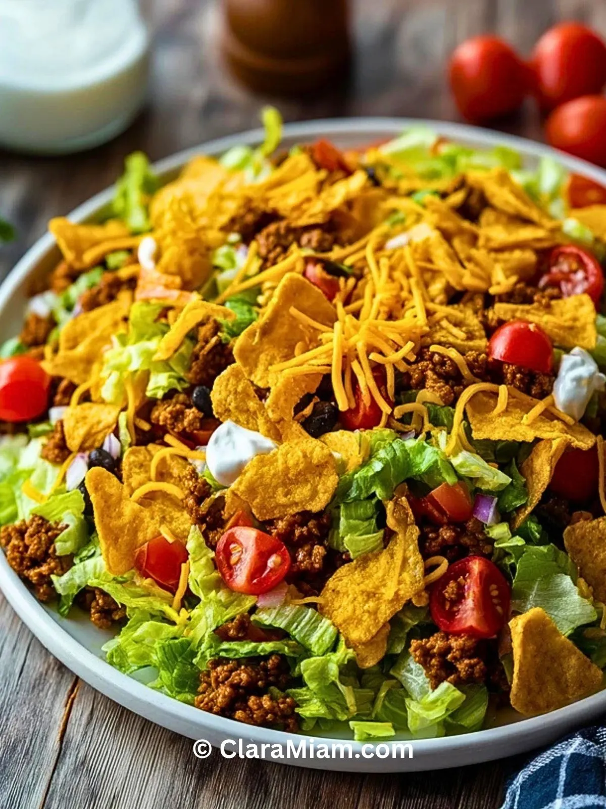 - Si tu prépares la salade à l’avance, réserve sauce et Doritos à part et assemble au dernier moment.