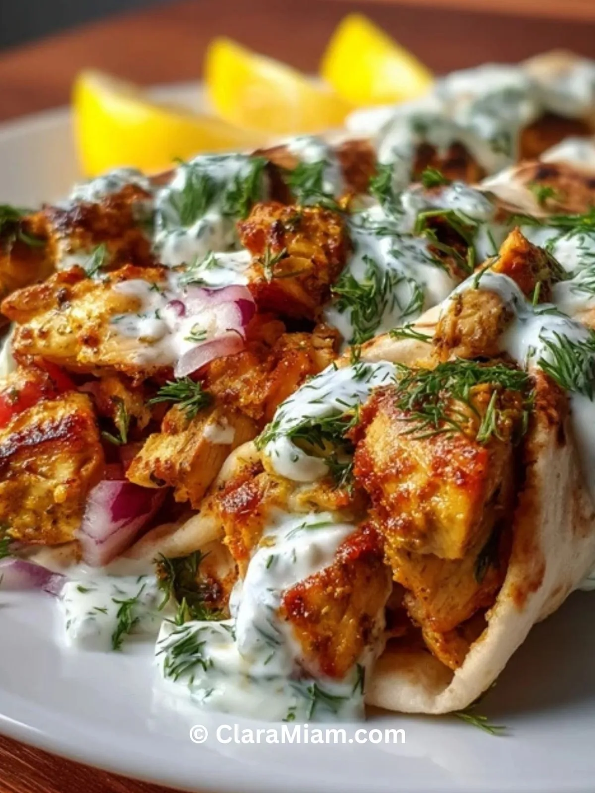 Keywords: shawarma, poulet, sauce yaourt, pita, épices