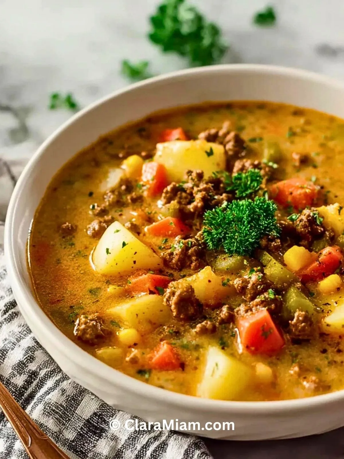 Une soupe épaisse, généreuse et réconfortante à base de bœuf haché, pommes de terre et légumes variés. Idéale pour réchauffer toute la famille, elle offre un repas complet et facile à préparer, avec une texture crémeuse et une saveur authentique de cuisine maison.