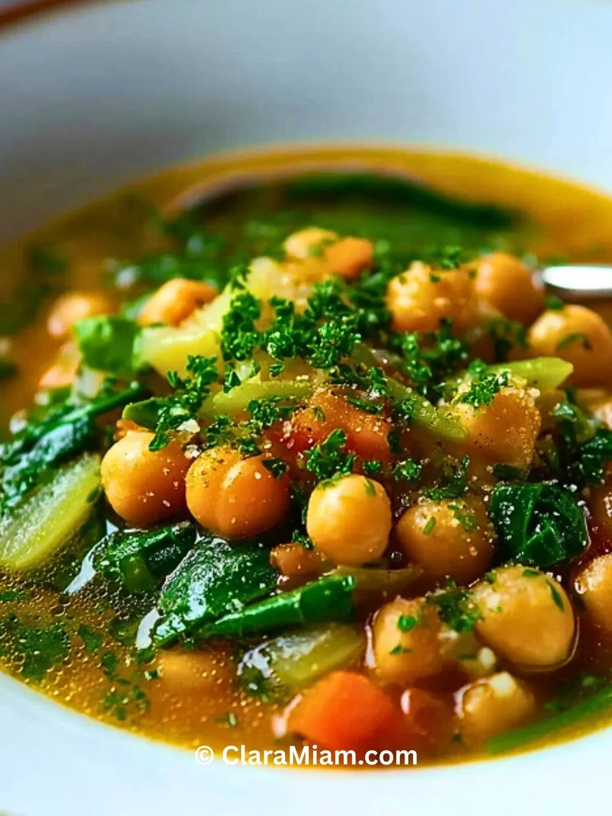 Avec ses légumes fondants, ses pois chiches riches en protéines et ses herbes parfumées, cette soupe est un vrai concentré de réconfort. Elle me rappelle les repas partagés en famille autour d’une grande table, avec du bon pain croustillant à tremper dedans. Facile à préparer et encore meilleure le lendemain !