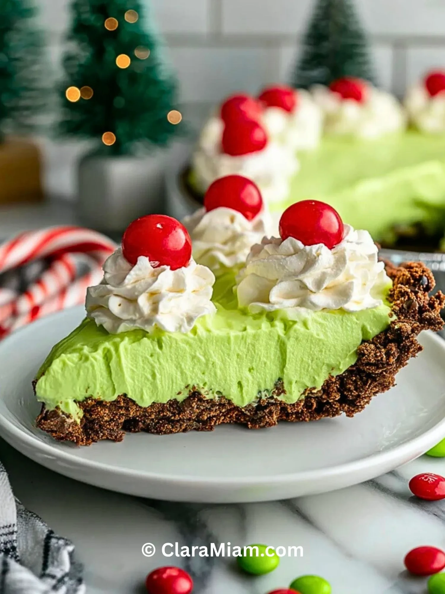 Tarte Grinch sans cuisson ultra festive avec base biscuit chocolat croustillante et crème verte onctueuse au fromage frais. Garnie de chantilly légère et de bonbons colorés, elle est parfaite pour Noël, les goûters d’hiver et les desserts ludiques en famille. Facile, rapide et sans four, elle séduit par sa texture crémeuse et son look amusant.