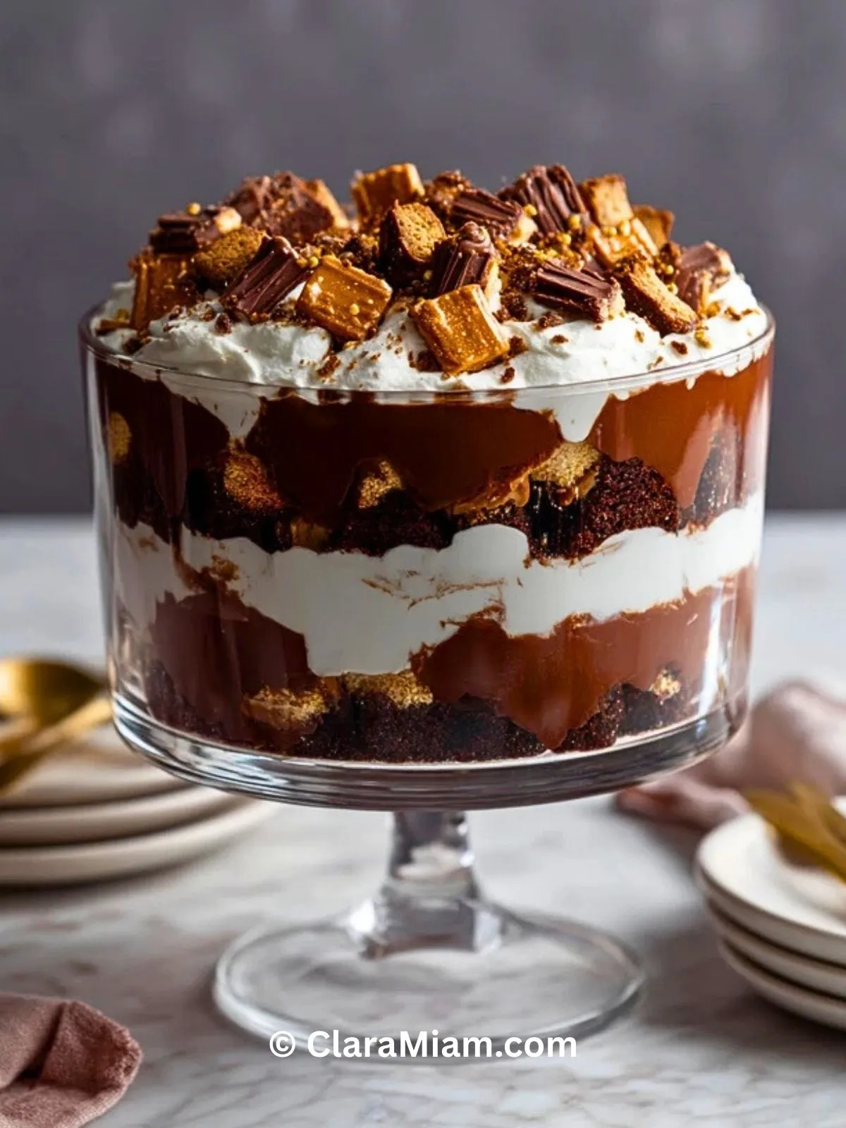 Keywords: trifle au chocolat et au toffee, dessert au chocolat, trifle facile, dessert de fête, dessert à partager, crème au chocolat, dessert gourmand