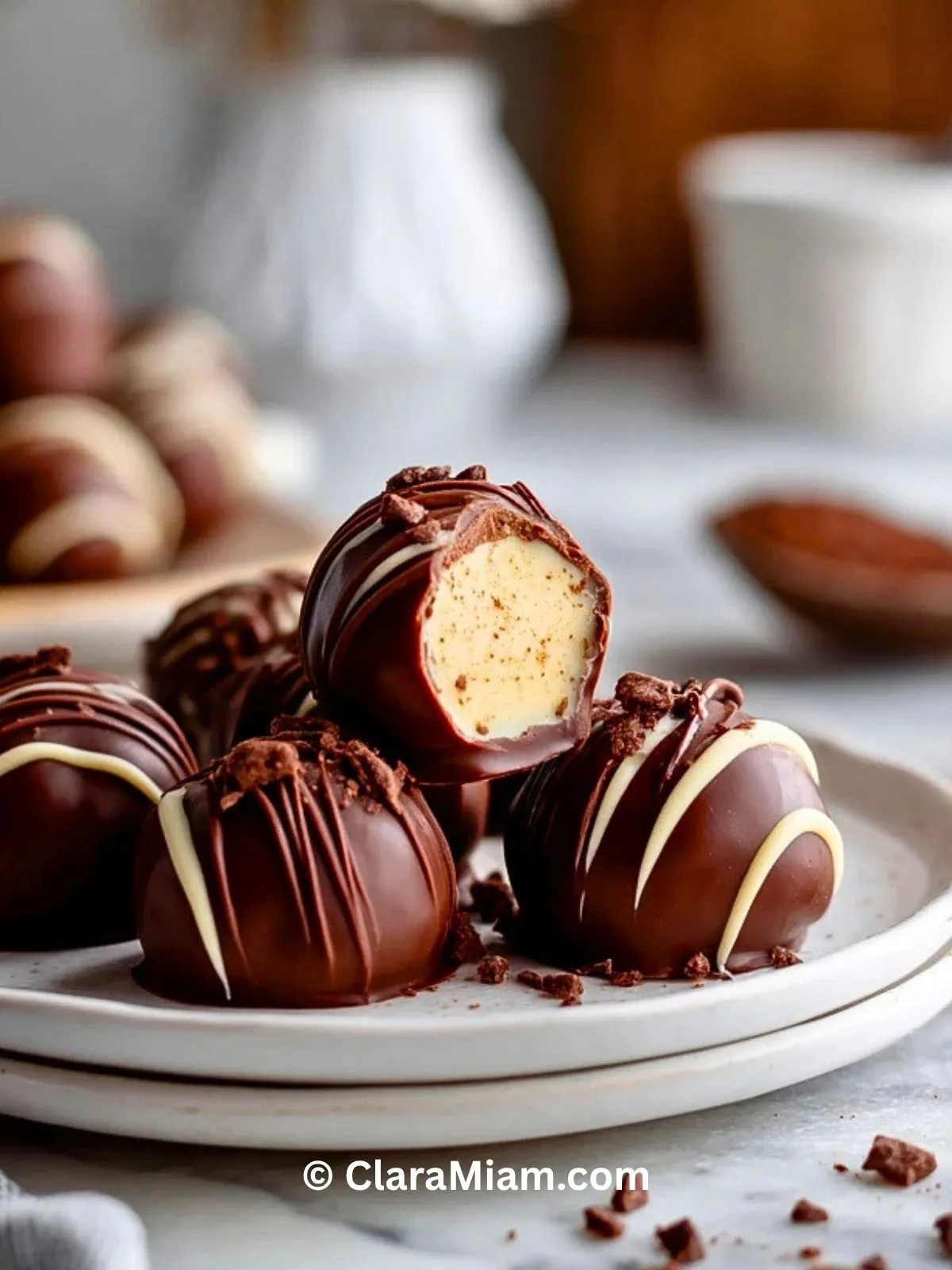 Quand je sers ces truffes à la fin d’un repas ou avec un café, elles font toujours leur effet. Elles ont ce côté chic sans être compliquées, et je trouve qu’elles sont parfaites pour les fêtes, les cadeaux maison ou simplement pour se faire plaisir avec une bouchée élégante et fondante.